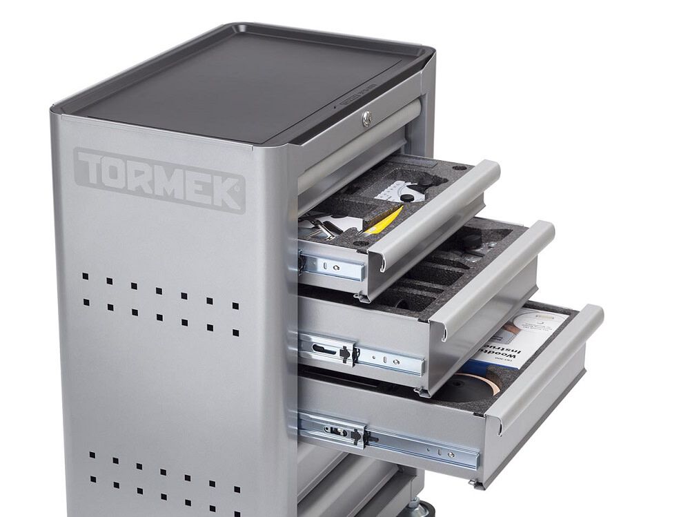Sturdy steel design with scratch resistant metallic coating, rounded corners and Tormek logotype.